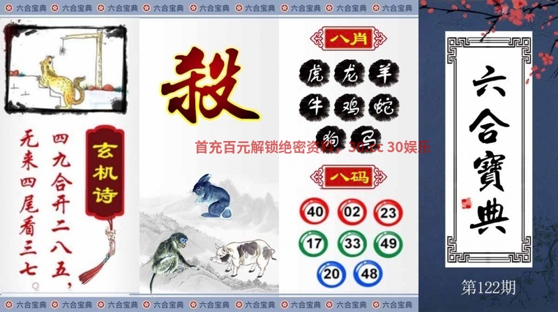 | 123期:七肖中特[蛇虎狗羊鼠马鸡]开:羊23准 |